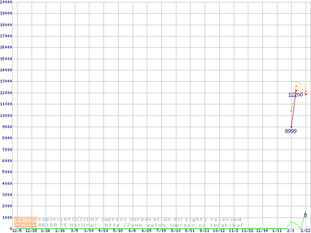 Socket A (OPGA,FSB 266MHz,L2 256KB,Thoroughbred)の最安値推移