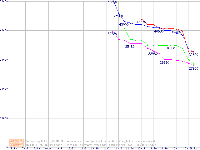 | [↓次グラフ]: | Socket A (OPGA,FSB 266MHz,L2 256KB,Thoroughbred)の最安値推移 |