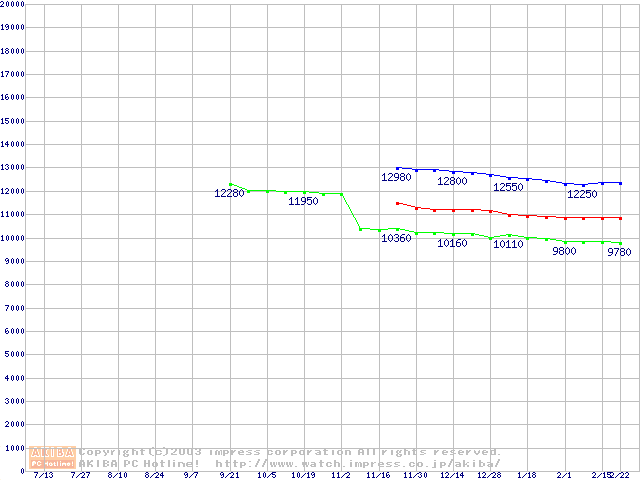 | [↑前グラフ]: | Socket 603 (micro-PGA,FSB 400MHz,L2 512KB,Prestonia)の最安値推移 |