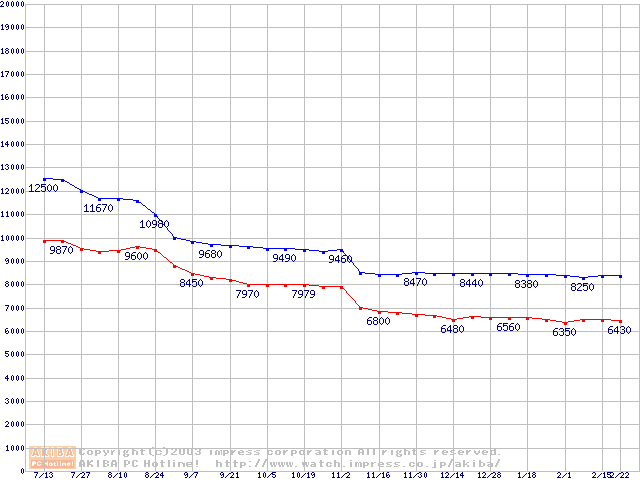 | [↓次グラフ]: | Socket 370 (FC-PGA2,FSB 133MHz,L2 512KB,Tualatin)の最安値推移 |