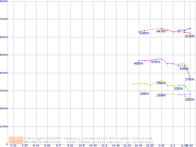| [↑前グラフ]: | Socket 478 (micro-PGA,FSB 400MHz,L2 512KB,Northwood)の最安値推移 |