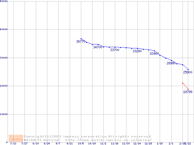 | [↓次グラフ]: | Deskstar 180GXP (7200rpm,2MB,UltraATA/100,FDB)の最安値推移 |