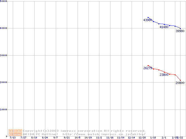 | [↑前グラフ]: | DiamondMax Plus 8 (7200rpm,2MB,UltraATA/133,FDB)の最安値推移 |