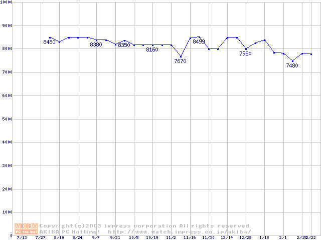| [↑前グラフ]: | Fireball 3 (5400rpm,UltraATA/133,2MB,FDB)の最安値推移 |