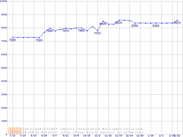 | [↓次グラフ]: | WD Caviar(Special Edition) (7200rpm,UltraATA/100,8MB)の最安値推移 |