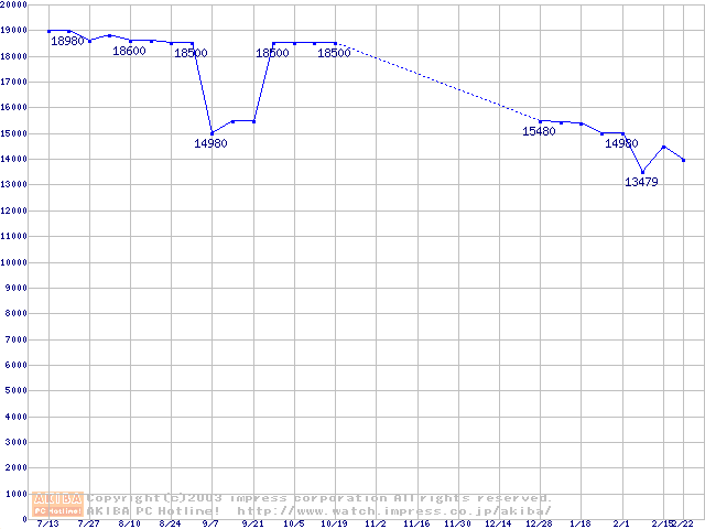 | [↑前グラフ]: | WD Caviar (7200rpm,UltraATA/100,2MB)の最安値推移 |