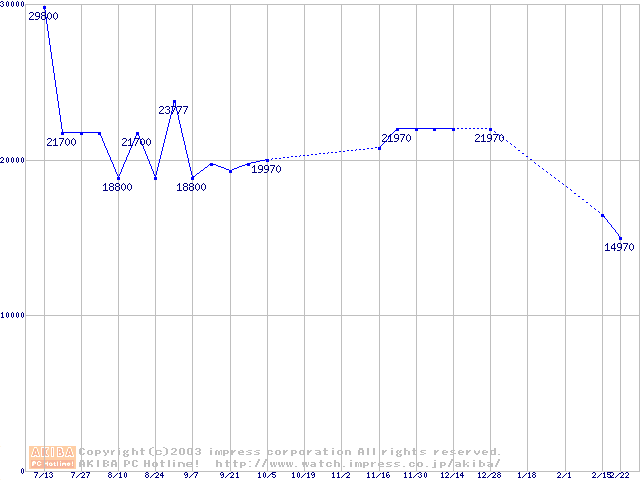 | [↓次グラフ]: | PC3200(DDR400) DDR SDRAM DIMMの最安値推移 |
