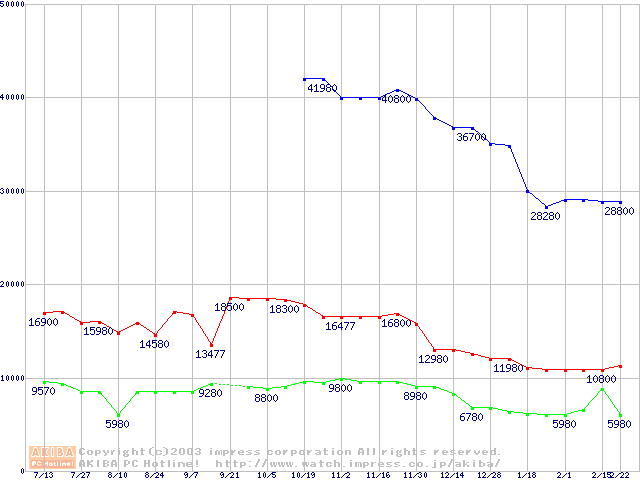 | [↓次グラフ]: | PC1066 DRDRAM RIMM4200(32bit)の最安値推移 |
