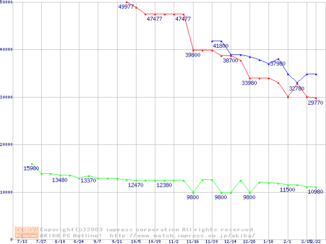 | [↓次グラフ]: | Socket 478 (micro-PGA,FSB 533MHz,L2 512KB,Hyper-Threading,Northwood)の最安値推移 |
