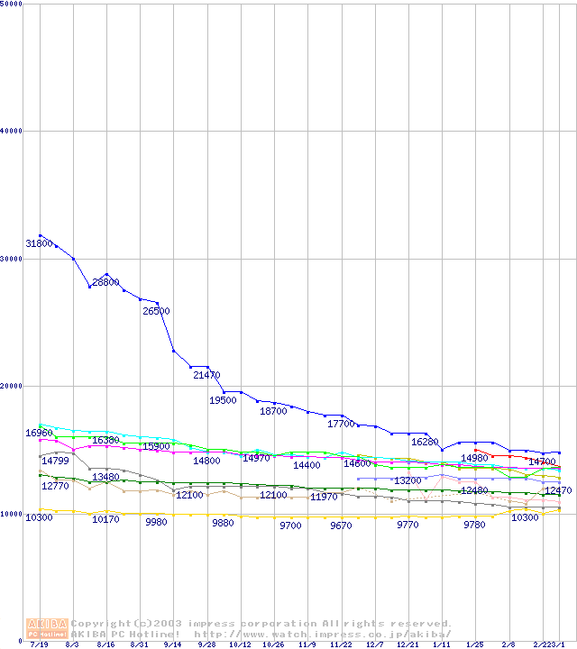 | [↓次グラフ]: | 2.5インチHDD主要製品(最安値1万5千円~2万円未満)の最安値推移 |