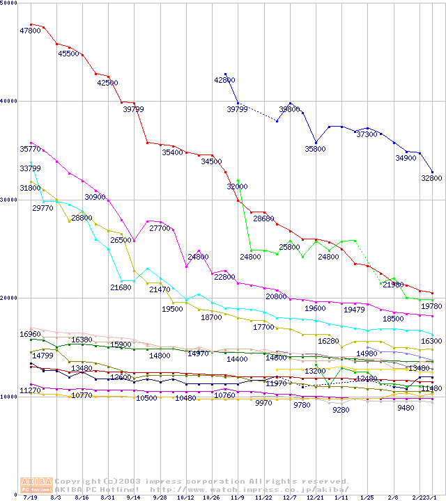 2.5インチHDD 60GB~80GB未満(9.5mm厚)の最安値推移