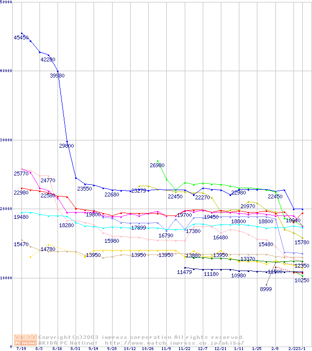 CPU主要製品(最安値2万円~3万円未満)の最安値推移