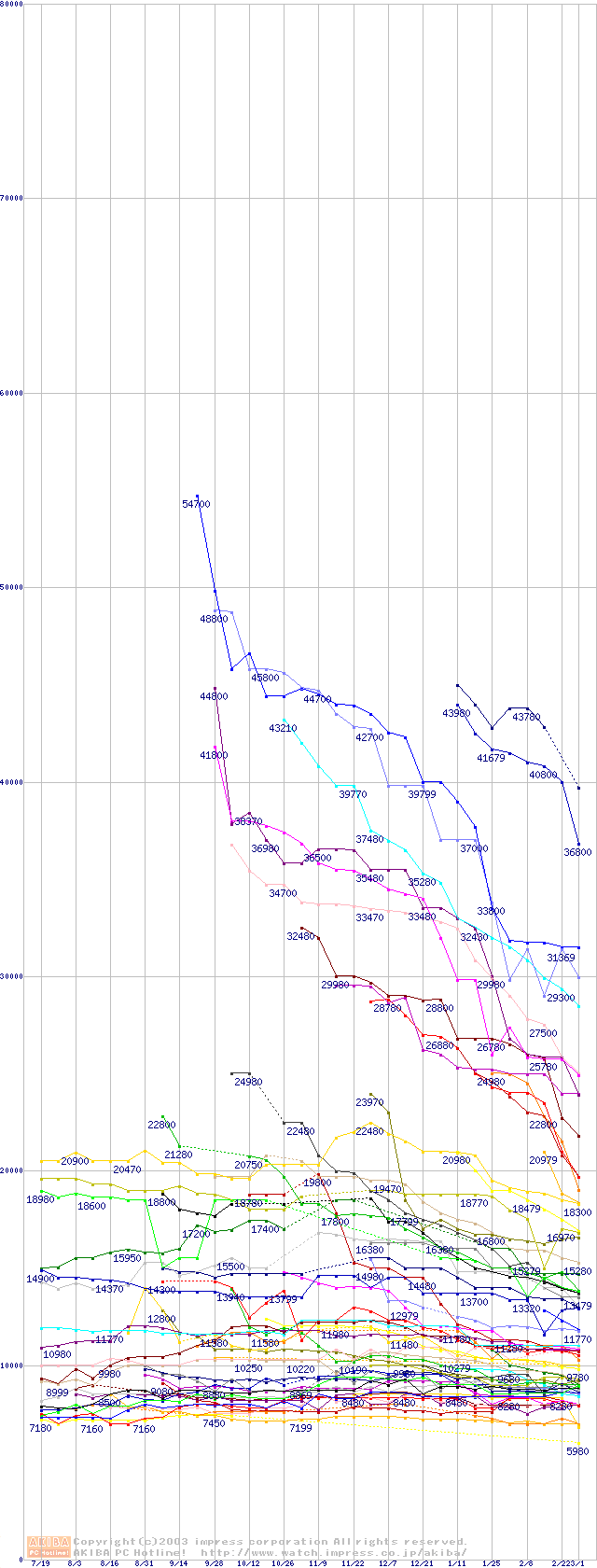 HDD 20GB~30GB未満(5400rpmクラス)の最安値推移