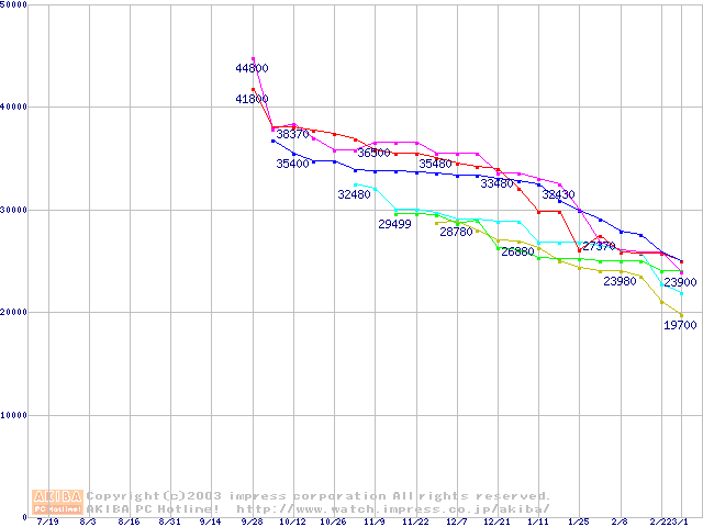 | [↓次グラフ]: | HDD 200GB以上(7200rpmクラス)の最安値推移 |