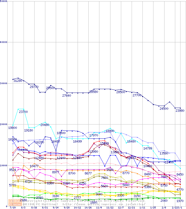 メモリ主要製品の最安値推移