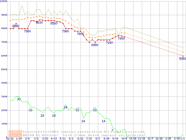 U6 (5400rpm,UltraATA/100 2MB 40GB/Platter)の最安値推移