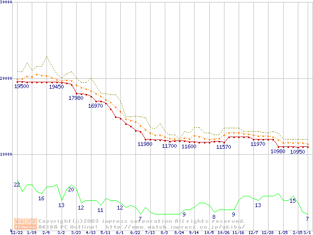 WD Caviar (7200rpm,UltraATA/100,2MB)の最安値推移