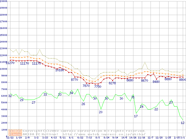 HDD主要製品の最安値推移