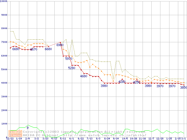 C3 800A MHz リテールパッケージの価格推移