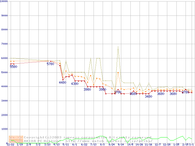 Socket 370・FSB 133MHzの最安値推移
