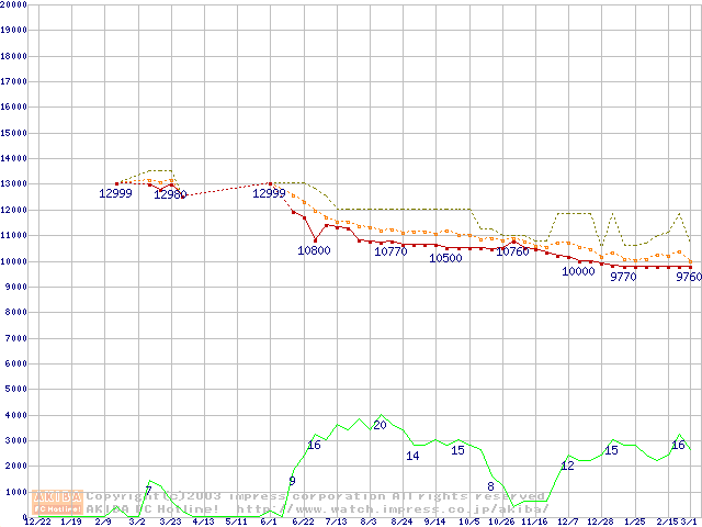 MKシリーズ (9.5mm,4200rpm,2MB,FDB,20GB/Platter)の最安値推移