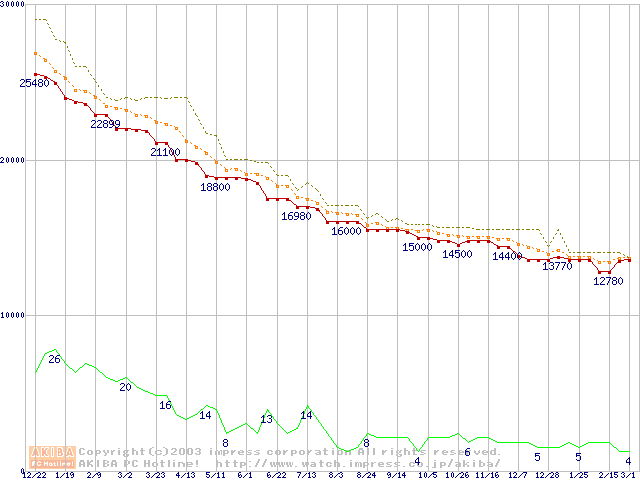 MKシリーズ (9.5mm,4200rpm)の最安値推移