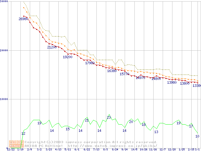 MKシリーズ (9.5mm,4200rpm,2MB,FDB,20GB/Platter)の最安値推移