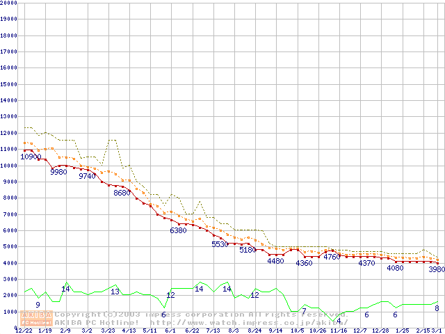 Socket A (PGA,FSB 200MHz,L2 64KB,Morgan)の最安値推移