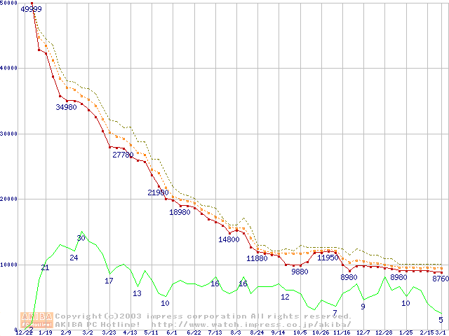 Socket A (OPGA,FSB 266MHz,L2 256KB,Palomino)の最安値推移