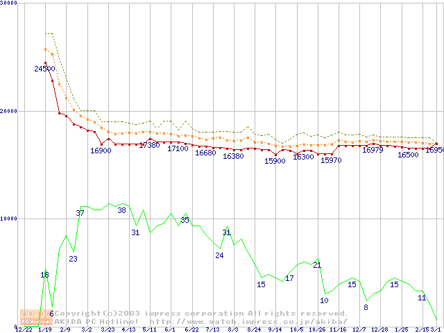 Pentium 4 1.60A GHz リテールパッケージの価格推移