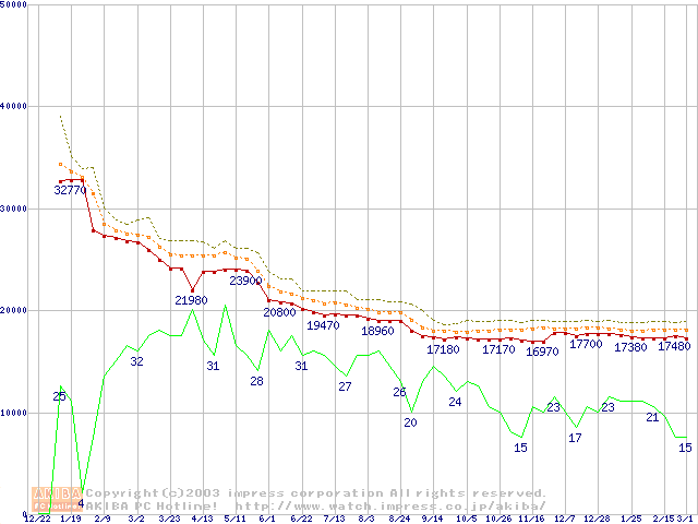 Pentium 4 1.80A GHz リテールパッケージの価格推移