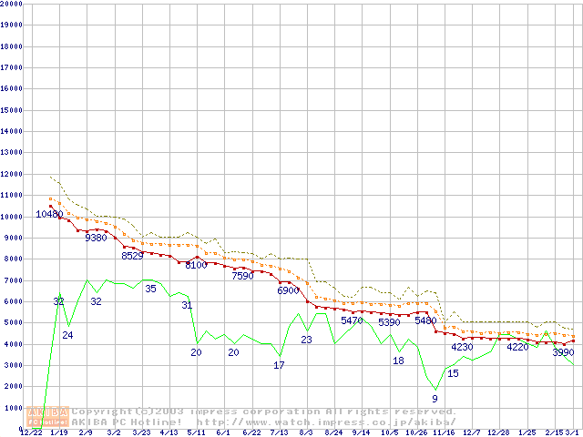Celeron 1A GHz FC-PGA2 リテールパッケージの価格推移
