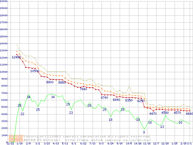 Celeron 1.10A GHz FC-PGA2 リテールパッケージの価格推移