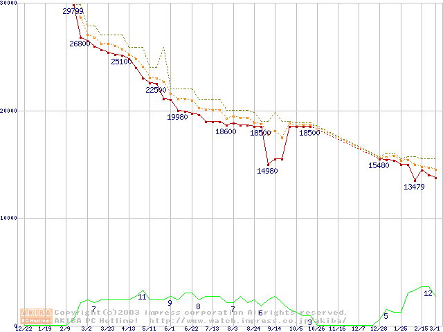 WD Caviar (5400rpm,UltraATA/100,2MB)の最安値推移