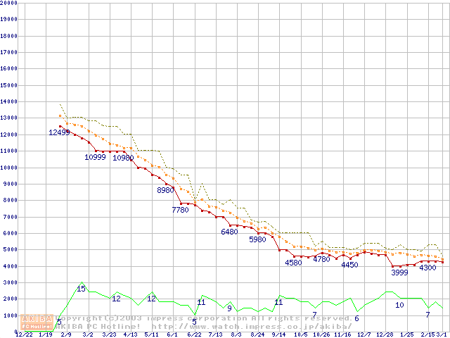 Socket A (PGA,FSB 200MHz,L2 64KB,Morgan)の最安値推移