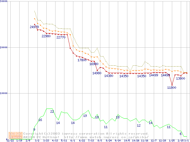 Athlon MP 1600+ (1.4GHz) リテールパッケージの価格推移