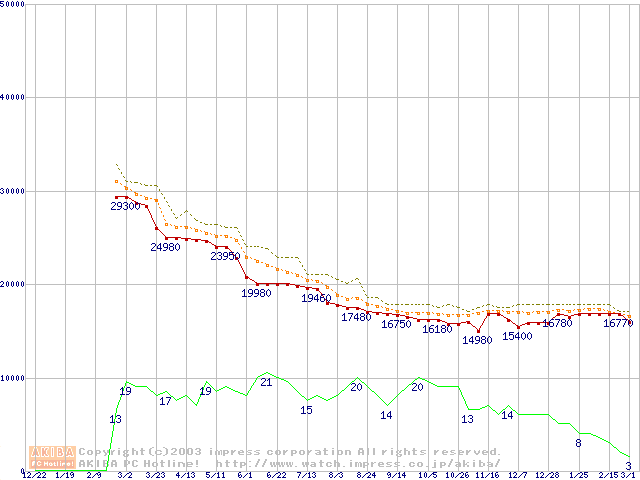 Athlon MP 1800+ (1.53GHz) リテールパッケージの価格推移