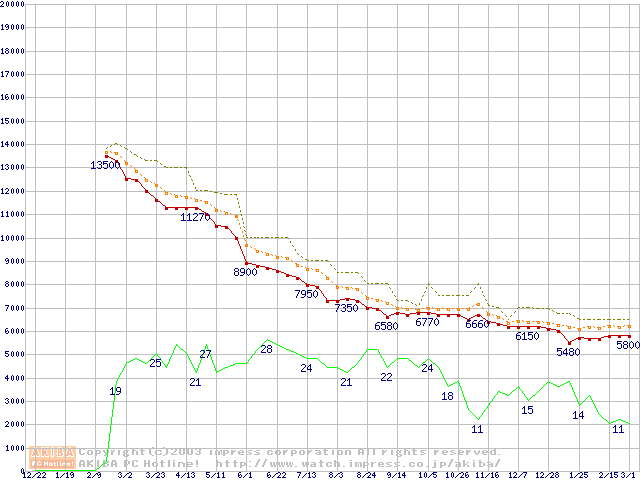 Duron 1.3GHz リテールパッケージの価格推移