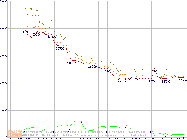 Socket 603 (micro-PGA,FSB 400MHz,L2 512KB,Prestonia)の最安値推移