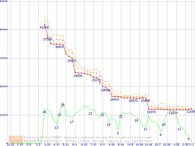 Socket A (OPGA,FSB 266MHz,L2 256KB,Palomino)の最安値推移