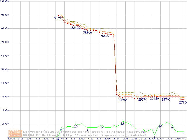 Socket 603 (micro-PGA,FSB 400MHz,L2 512KB,Prestonia)の最安値推移