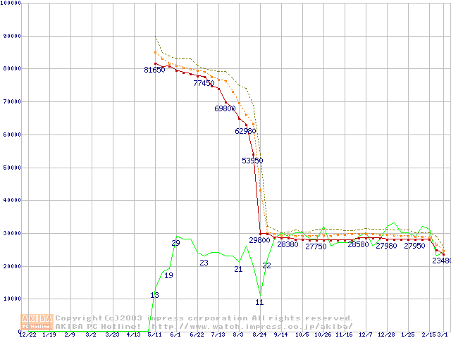Pentium 4 2.53GHz リテールパッケージの価格推移