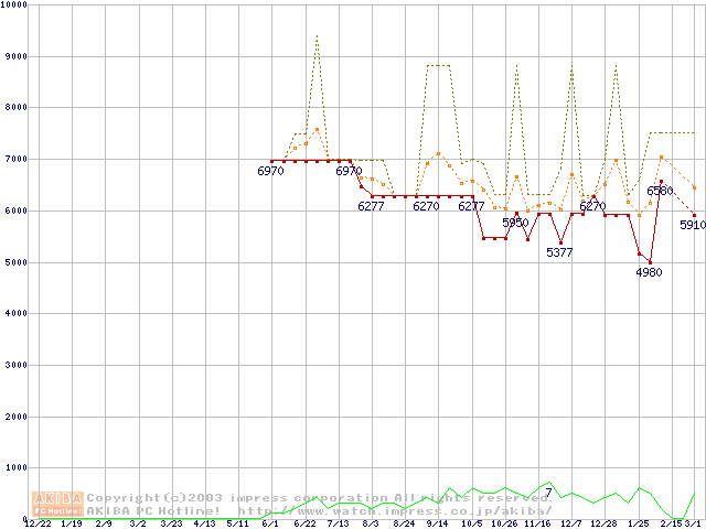 PC800-40 DRDRAM RIMM ECC対応の最安値推移