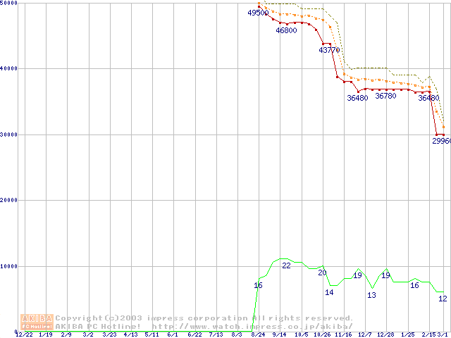Socket 478 (micro-PGA,FSB 400MHz,L2 512KB,Northwood)の最安値推移