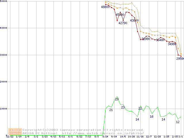 Pentium 4 2.66GHz リテールパッケージの価格推移
