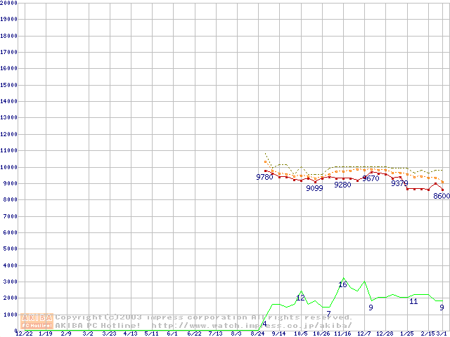 DiamondMax 16 (5400rpm,UltraATA/133,2MB,80GB/Platter,BB)の最安値推移