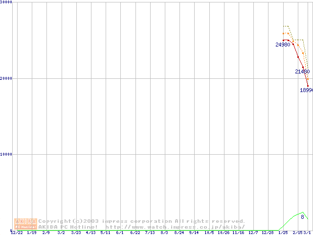 DiamondMax 16 (5400rpm,UltraATA/133,2MB,80GB/Platter,FDB)の最安値推移