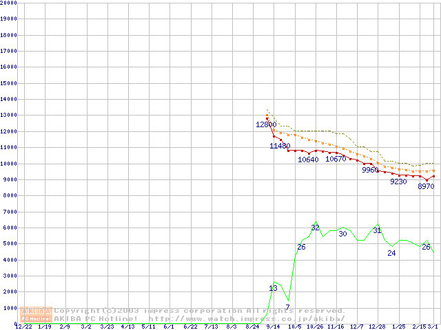 DiamondMax Plus 9 (7200rpm,2MB,UltraATA/133,FDB)の最安値推移