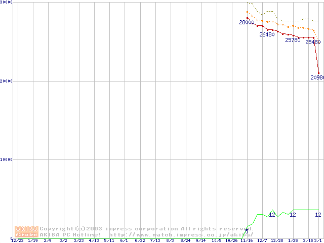 Socket A (OPGA,FSB 266MHz,L2 256KB,Thoroughbred)の最安値推移