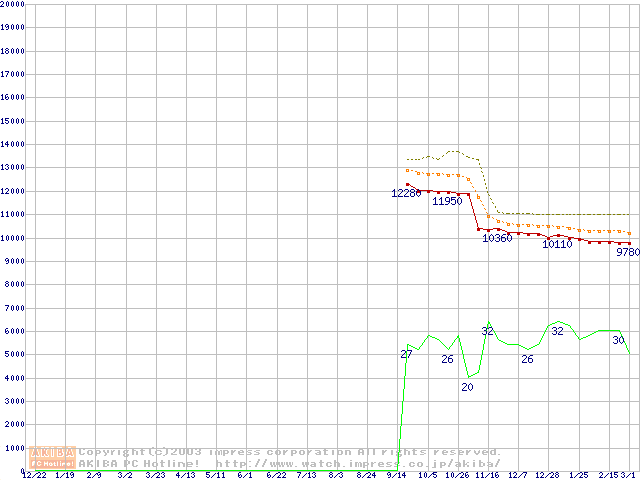 Socket 478 (micro-PGA,FSB 400MHz,L2 128KB,Northwood)の最安値推移